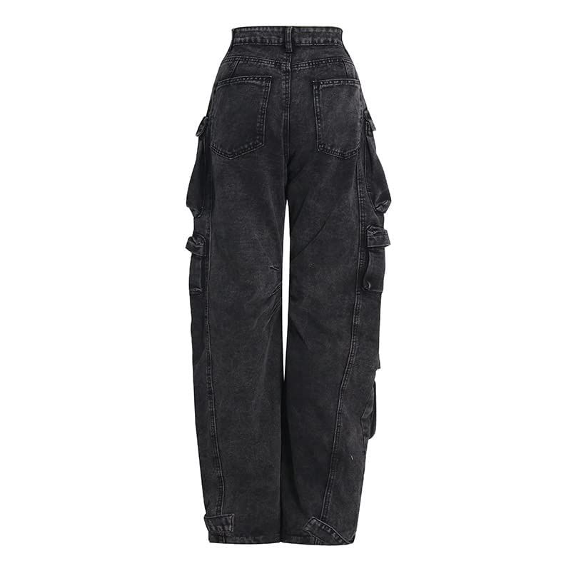 Costaric Womens High Waisted Baggy Cargo Jeans Straight Wide Leg Y2K Cargo Denim Pants with Flap Pockets 4