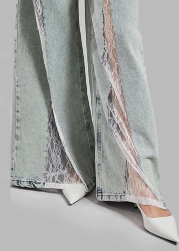 More information about CHARTOU Low Rise Wide Leg Jeans Woman Baggy Lace Patchwork Flare Y2k Jeans Bell Bottom Denim Pants Summer