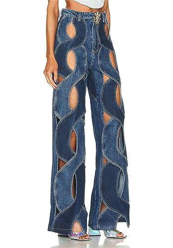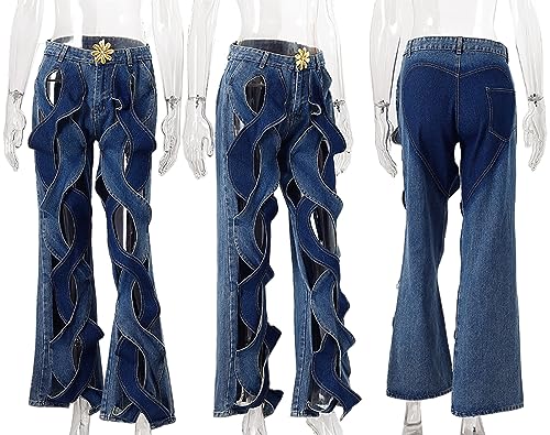 More information about NRTHYE Criss Cross Hollow Out Jeans for Women Casual Straight Leg Denim Pants Streetwear