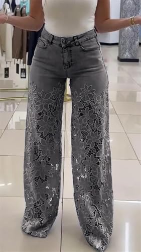 • STYLISH LACE PATCHWORK DESIGN: Featuring intricate lace patchwork and hollow details, these Women's Lace Denim Pants offer a chic and elegant vibe, casual outing