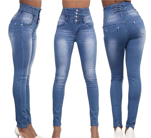 HOT ! Andongnywell Flare Jeans Women High Rise Stretchy Skinny Jeans Butt Lifting Slim Fit Denim Pants Multiple Buttons Trouser
