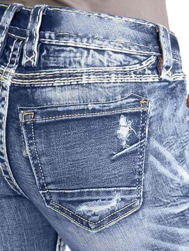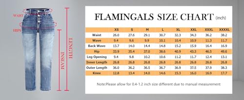 More information about Flamingals Women's Mid Waisted Button Fly Straight Leg Front Jeans Topstitching Ripped Casual Denim Pants