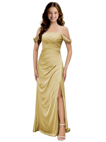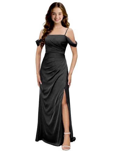• Exquisite design for little bridesmaid dress:A line floor length girls wedding dress,Strapless junior bridesmaid dresses,High-waisted design,Floor length girls prom bridesmaid dress,High Slit Sleeveless Satin Girls Formal Evening Gowns,Off shoulder flower girl dress,Spaghetti strap junior homecoming dress,The jr bridesmaid dress has 2 layers,This prom dress for little girls can show the elegant figure of a girl