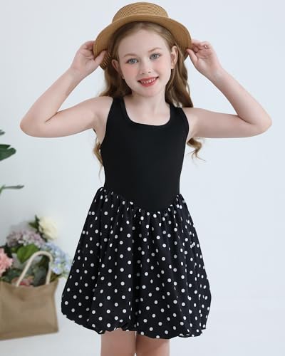 Girls Summer Dresses Tween Back to School Outfits Casual Sleeveless Bubble Sundress with Pockets for 7-12 Years 1