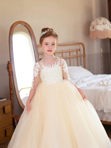 • 💜Princess Style Design: Puffy Tulle flower girl dress, elegant first communion dress, fancy flower girl high low dress, girls formal dress, pageant dresses for Girls features Long Sleeve, Round Neck,Long Train, Back Bowknot, Floor Length.