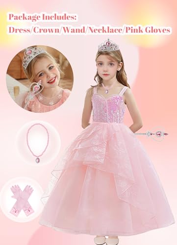 Girl Sequins Tulle Dress Princess Party Prom Ball Gown Pink Witch Dresses with Crown and Wand 6