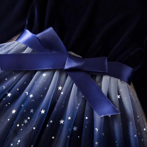 HNXDYY Little Girls Long Sleeve Star Print Knee Length Casual Princess Dress 4