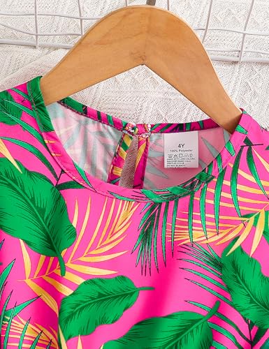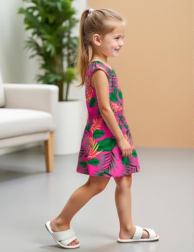 Girls' Dresses Summer Sleeveless Floral Casual Dress with Adjustable Waist Rose Red for Kids 4-8 Years 6