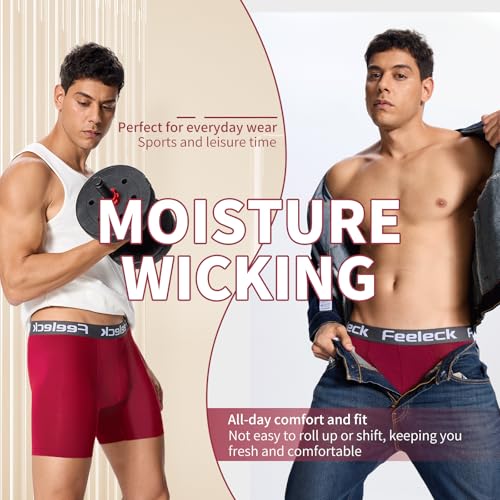 HOT ! Feeleck Mens underwear Rayon Boxer Briefs 7-Pack,Soft & Moisture Wicking with Fly Underwear for Man