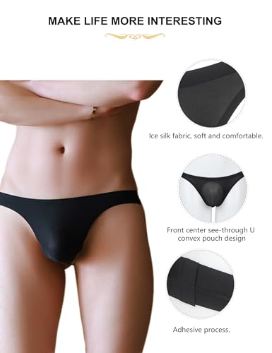 ohyeahlady Mens Sexy Thong Underwear Briefs G-String Pouch Ice Silk Lingerie for Mens Breathable Sheer Panties S-2XL 3