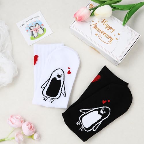 1 Year Anniversary Romantic Gifts Set – 2 Pairs of Penguin Couple Socks with 1st Anniversary Card & Gift Box for Couples, Him, Her, Husband, Wife, 1 Year Wedding Anniversary 1