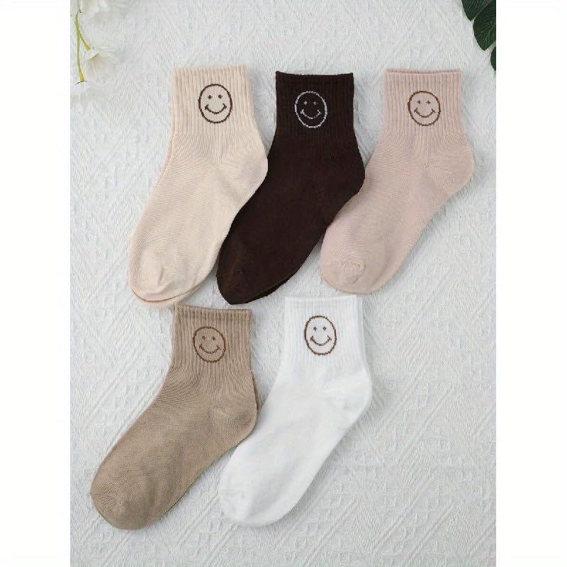 5Pair Unisex Mid - Calf Socks with Emoji Patterns for Outdoor & Daily Wear in Warm Colors - Comfortable, Stylish, Durable, ColorMixing 1