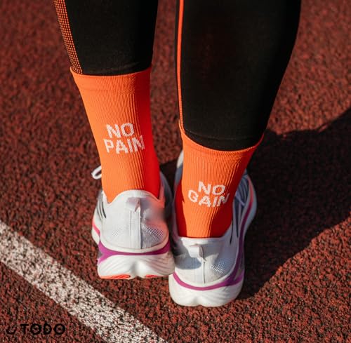 • Todo Active RUNNING RAID - Breathable mens running socks . CREW length, well-fitting running socks for blister-free jogging. Orange marathon socks with an inscription: NO PAIN NO GAIN.