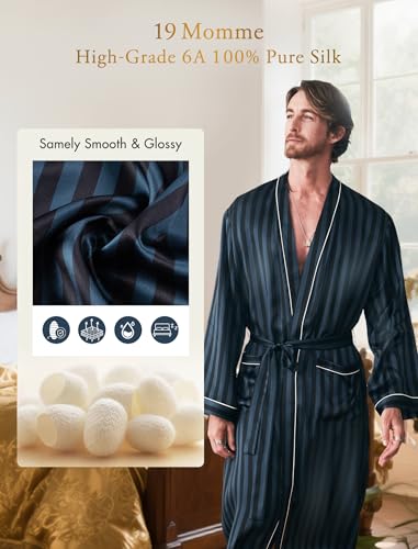 • 19MM Mulberry Mens Silk Robe:Crafted with 6A Grade 100% pure mulberry silk,this silk robe delivers a silky soft and smooth to the touch like second skin yet durable enough for daily use.The lustrous sheen elevates relaxation into a spa worthy experience whether post shower or unwinding at home