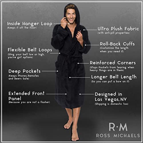 HOT ! Ross Michaels Mens Robe Hooded Wrap Style - Mid Length Plush Fleece Bathrobe (Black, Large/X-Large)