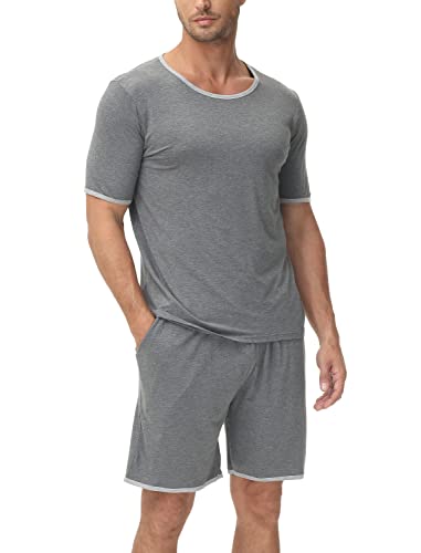 HOT ! MoFiz Men's Pajamas Set Sleepwear Sleep Shirt and Shorts Pajama Set Lightweight Soft Mens Pjs Lounge Set with Pockets S-3XL