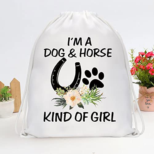 HOT ! BDPWSS Horse Drawstring Bag Horse Lover Gift I'm a Dog And Horse Kind Of Girl Gift For Dog Owner Dog Mom Gift (Dog horse girl Sbp)