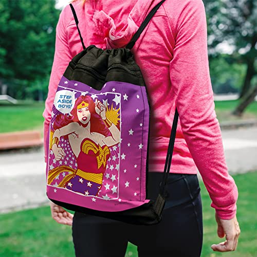 LOGOVISION Wonder Woman Step Aside Boys Drawstring Backpack Sports Bag Sackpack 17" x 13", Perfect for Gym, Yoga or Practice 1