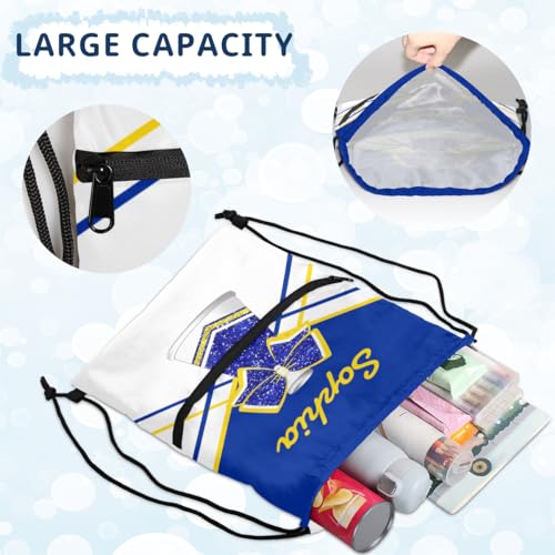 HOT ! Personalized Cheer Drawstring Backpack Customized Sport Grip Bag,Lightweight Drawstring Bag for Girls,Custom Name Cheerleader Gift Yellow Blue Cheerleading