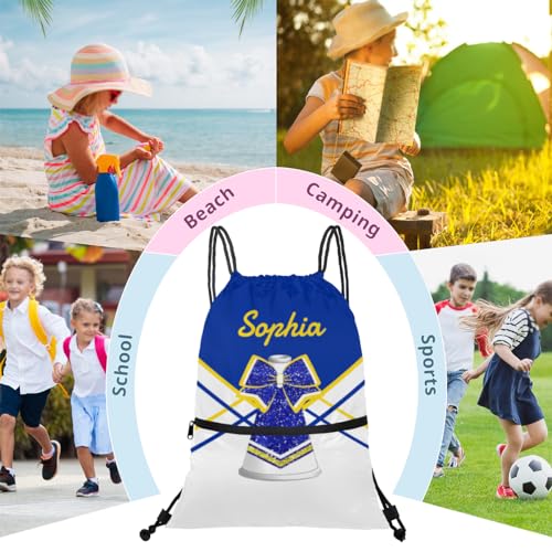 Personalized Cheer Drawstring Backpack Customized Sport Grip Bag,Lightweight Drawstring Bag for Girls,Custom Name Cheerleader Gift Yellow Blue Cheerleading 5