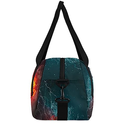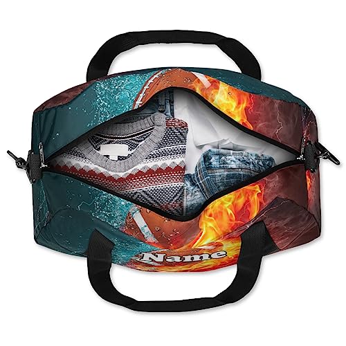 HOT ! Sports Custom Name Kids Duffel Overnight Bag for Little Boys Girls Teen, Football on Fire and Water Personalized Small Gym Sport Duffel Bag Travel Weekender Tote Carry-On Dance Bag