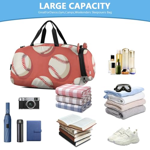 Gym Travel Duffle Bag for Boys Girls Baseball Red Coral Pattern Sports Dance Bag with Shoe Compartment & Wet Pocket Football Kids Travel Bag Teens Sleepover Carry 1