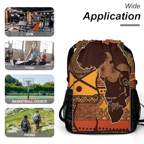 • Versatile for Active Use: This African Map Ethnic Sports Backpack for Women Is Suitable for Gym, Swimming, Work Commuting, Beach, Travel, Shopping, Training, Hiking, And Other Occasions. The African Map Ethnic Cinch Bags Drawstring Is Suitable for Both Men and Women and Makes a Great Gift for Your Loved Ones