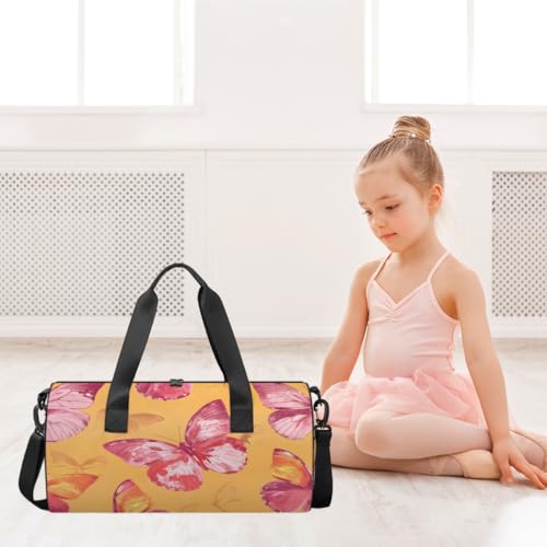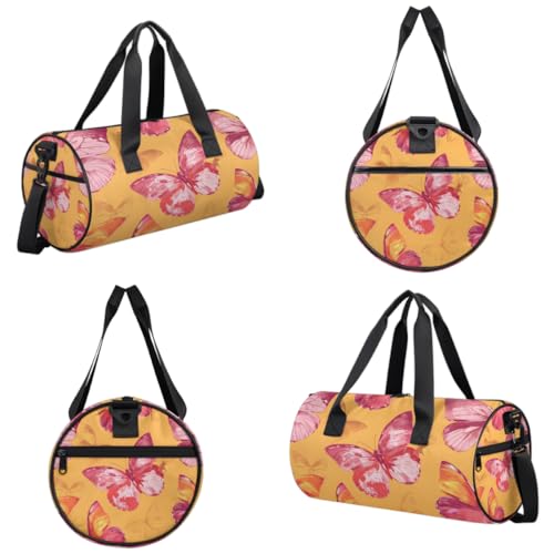 Butterflies Round Barrel Sports Fitness Bag, Yellow Travel Luggage Bag, Reusable Handbag, Suitable For Men and Women 1