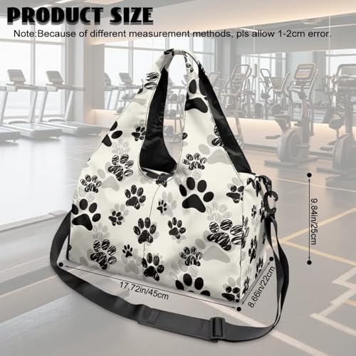 HOT ! GLENLCWE Dog Paw Gym Bags with Shoe Compartment Durable Tactical Bag with Adjustable Strap Sports Duffle Bags Printed, Black and White Sports Bag for Exercises High School Workout