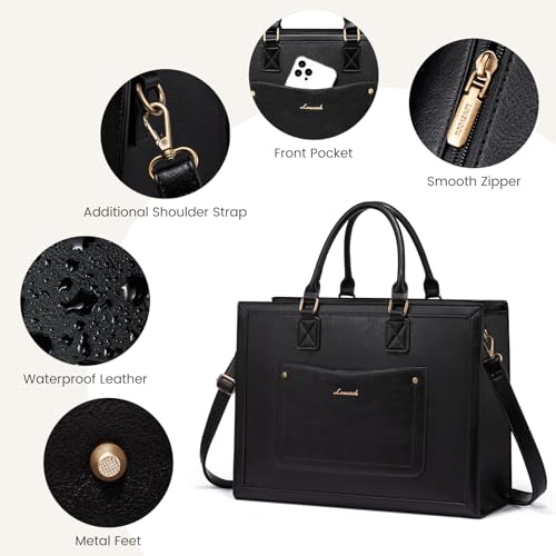 LOVEVOOK Laptop Tote Bag for Women, 15.6 Inch Work Bags, Vintage Leather Tote Bag, Waterproof Computer Bags with Clutch Purse, Large Capacity Messenger Bag for Teacher College Business Office 4