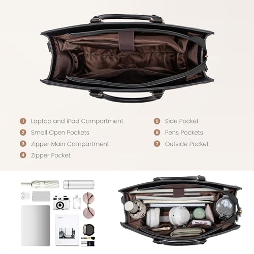 LOVEVOOK Laptop Tote Bag for Women, 15.6 Inch Work Bags, Vintage Leather Tote Bag, Waterproof Computer Bags with Clutch Purse, Large Capacity Messenger Bag for Teacher College Business Office 5