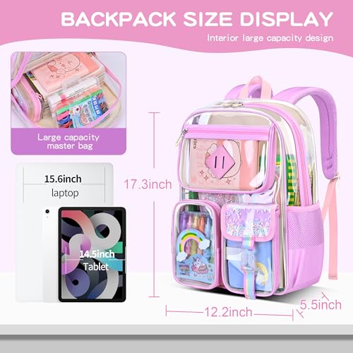 girl transparent casual rucksack,women's water-proof light packsack,pink junior high school, high school and college schoolbag,Suitable for 15.6-inch computer backpack. 4
