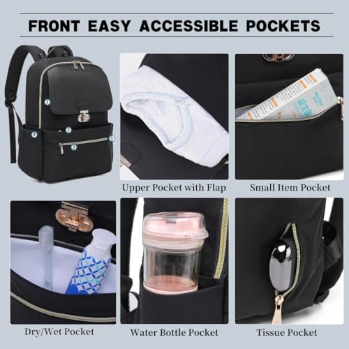 Baby Diaper Bag Backpack Laptop Backpack for Women, Travel Backpack Purse Stylish Compact Baby Bag with Insulated Pockets(Black) 6