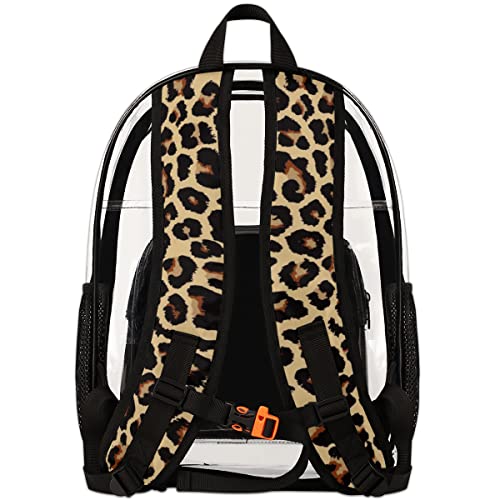 Leopard Clear Backpack Stadium Approved Heavy Duty PVC Transparent Backpacks Large See Through Bag for Work Travel Sports Events Concerts 5