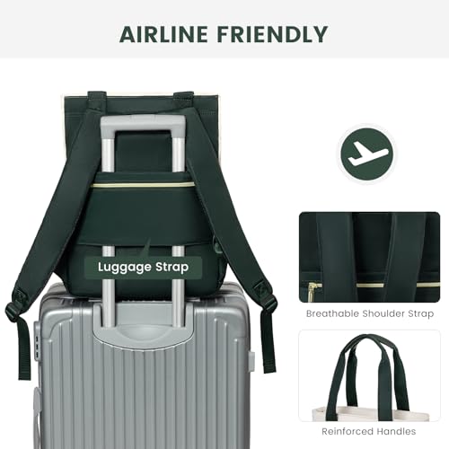 LOVEVOOK Laptop Backpack for Women, 15.6 Inch Work Business Travel Backpack, Fation Teacher Doctor Nurse Backpack Purse, Waterproof Cute Backpack,DarkGreen-Beige 4