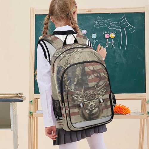 Backpack American Flag Deer Head Travel Laptop Daypack Shoulder Bag Book Bag Daypack with Reflective Strip 12.9 ×17.7 In 1