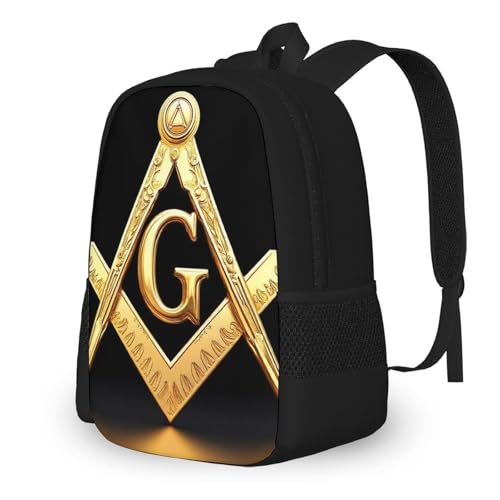 Large Water Resistant College Bag, Computer Bag, Durable Travel Laptop Backpack For Women Men Gold Freemason Freemasonry Masonic 6