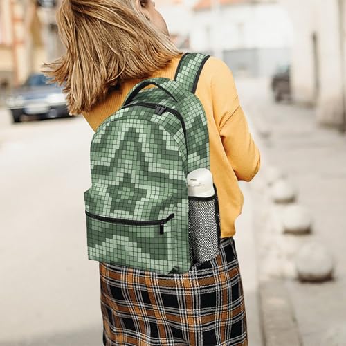 Pixel Green Star Pattern Backpack Bookbag Laptop Backpacks Multipurpose Daypack for Boys Girls School Men Women Travel Hiking 5