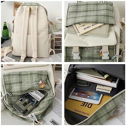 HOT ! 5 pcs Cute Backpack Set Aesthetic Backpack Japanese Kawaii Plaid Bag Preppy Accessories Fit 15.6" Laptop Casual Daypack (Pink,One Size)