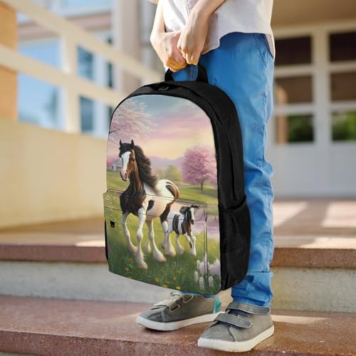 Gypsy Vanner Horse Mare And Foal In Spring Pasture Art Daypack Lightweight Multipurpose Anti-Theft Shoulder Bag Large Capacity Laptop Book Bag Rucksack With Adjustable Shoulder Straps 4