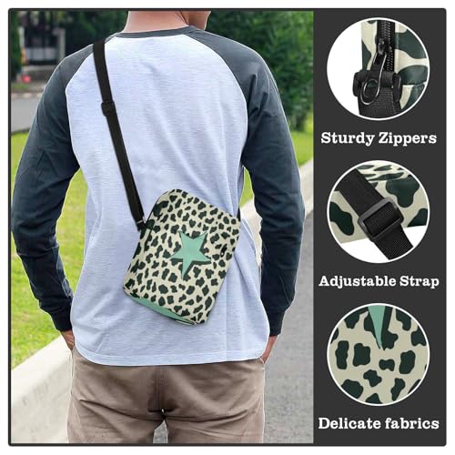 small messenger bag for men Shoulder Bag Purse For Teens Adjustable Strap for Casual Casual- Leopard Print Star Lightgreen 1