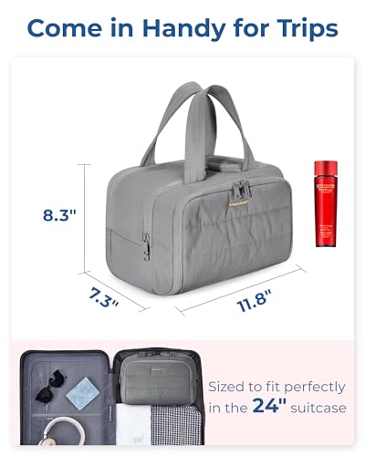 HOT ! BAGSMART Travel Toiletry Bag, Lightweight Large Wide-open Travel Bag for Women, Puffy Cosmetic Makeup Bag Organizer with Handle for Accessories,Essentials, Toiletries, Grey