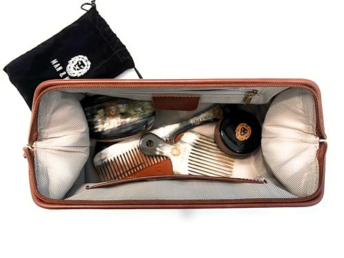 MAN & MANE Premium Leather Toiletry Bag for Men & Women – Classic Dopp Kit Travel Shaving Bag (Cognac Brown) 6