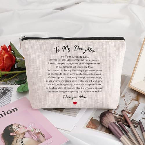 HOT ! Wedding Gift for Bride from Mom Bridal Shower Gift Travel Makeup Bag Bridal Gifts for Bride Keepsake for Daughter from Mother to My Daughter on Your Wedding Day