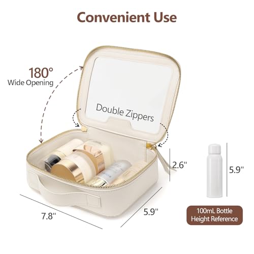 HOT ! PACKISM Medium Clear Makeup Bag - PU Leather Clear Travel Bags for Toiletries Car Bag for Essentials, with Message Card Cosmetic Bags Makeup Case for Women Gift (Cream Medium)