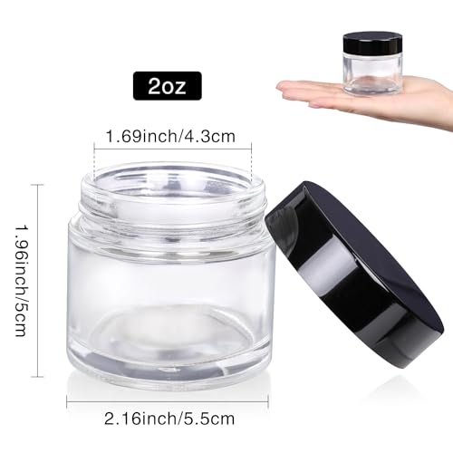 3 Pack Clear Small Glass Cosmetic Jars with Lids - 60 ml Empty Glass Makeup Containers for Sample, Cream, Lotion, Powder (2 OZ) 4