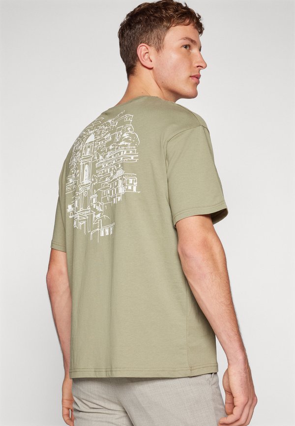 HOT ! SLHLOOSE PRINT O-NECK TEE - Print T-shirt - vetiver
