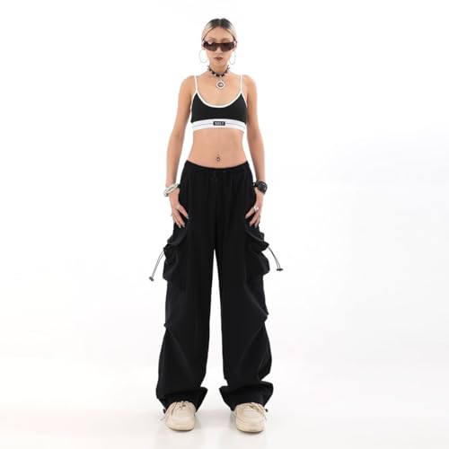 More information about Baggy Parachute Pants for Womens Wide Leg Cargo Pants Y2k with Pockets Boyfriend Harajuku Streetwear Goth