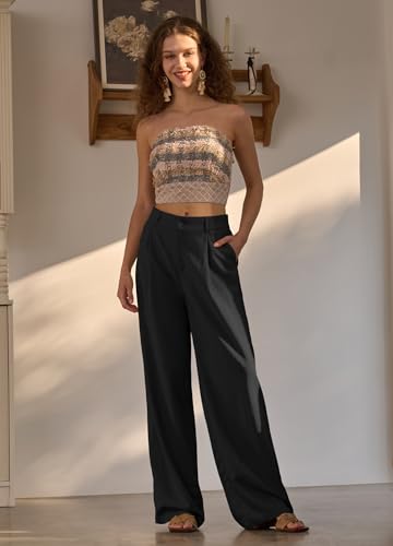 • Flattering Wide-Leg Fit The high-waisted silhouette with front pleats and an elasticized back offers both structure and ease. The flowy, flowy wide-leg silhouette enhances curves and offers breezy comfort with modern polish.