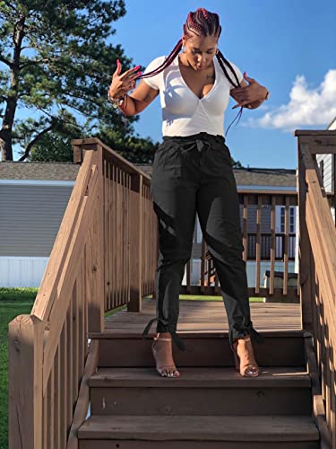 GOBLES Women Solid Casual Work Trousers High Waist Ruffle Bow Tie Pants 6